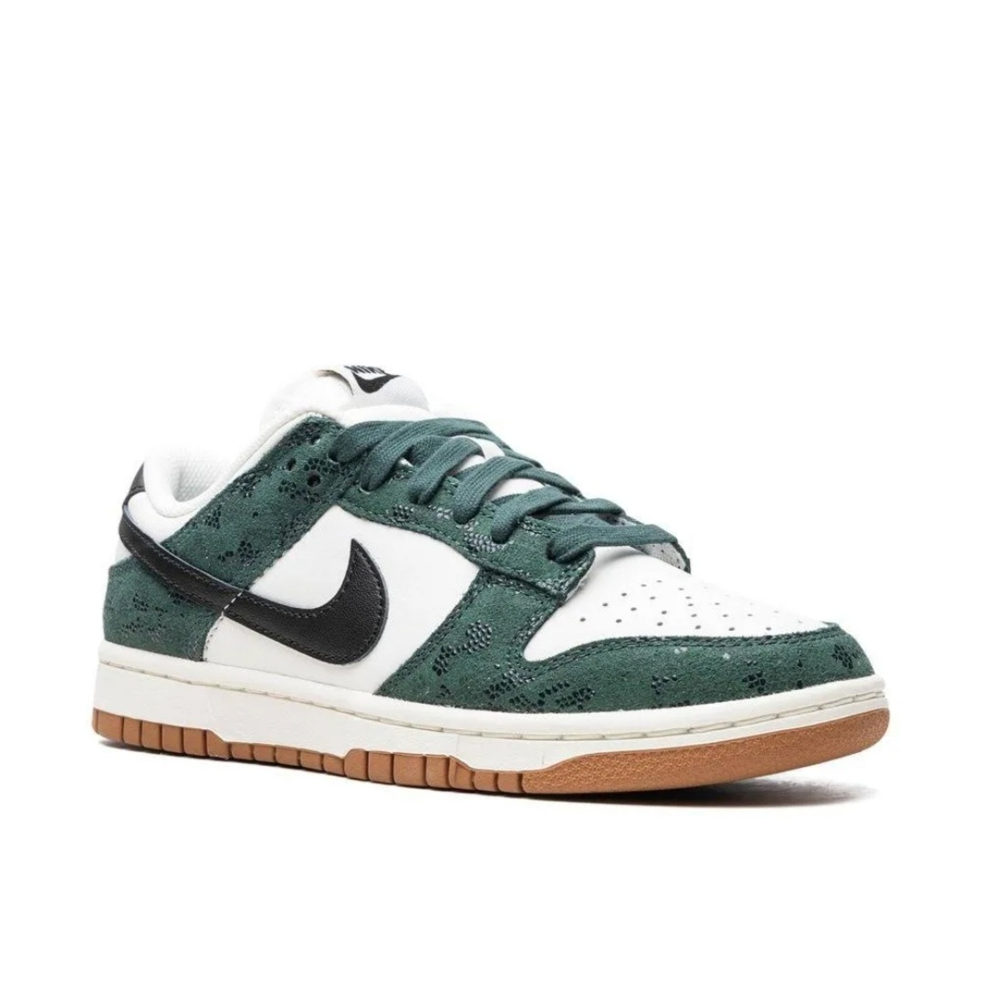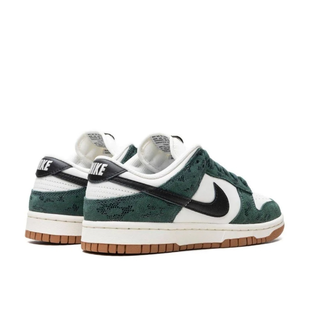 The Nike Dunk Low “Green Snakeskin” combines the iconic Dunk silhouette with a striking snakeskin texture. The upper is crafted with a mix of smooth leather and snakeskin-inspired overlays in rich green tones, giving it an exotic, eye-catching appeal. A white midsole adds contrast while offering classic Dunk comfort, while a durable rubber outsole ensures traction and support. Whether you’re a sneakerhead or just looking to add some flair to your collection, the “Green Snakeskin” Dunk Low is a must-have for those who appreciate bold style with premium materials.