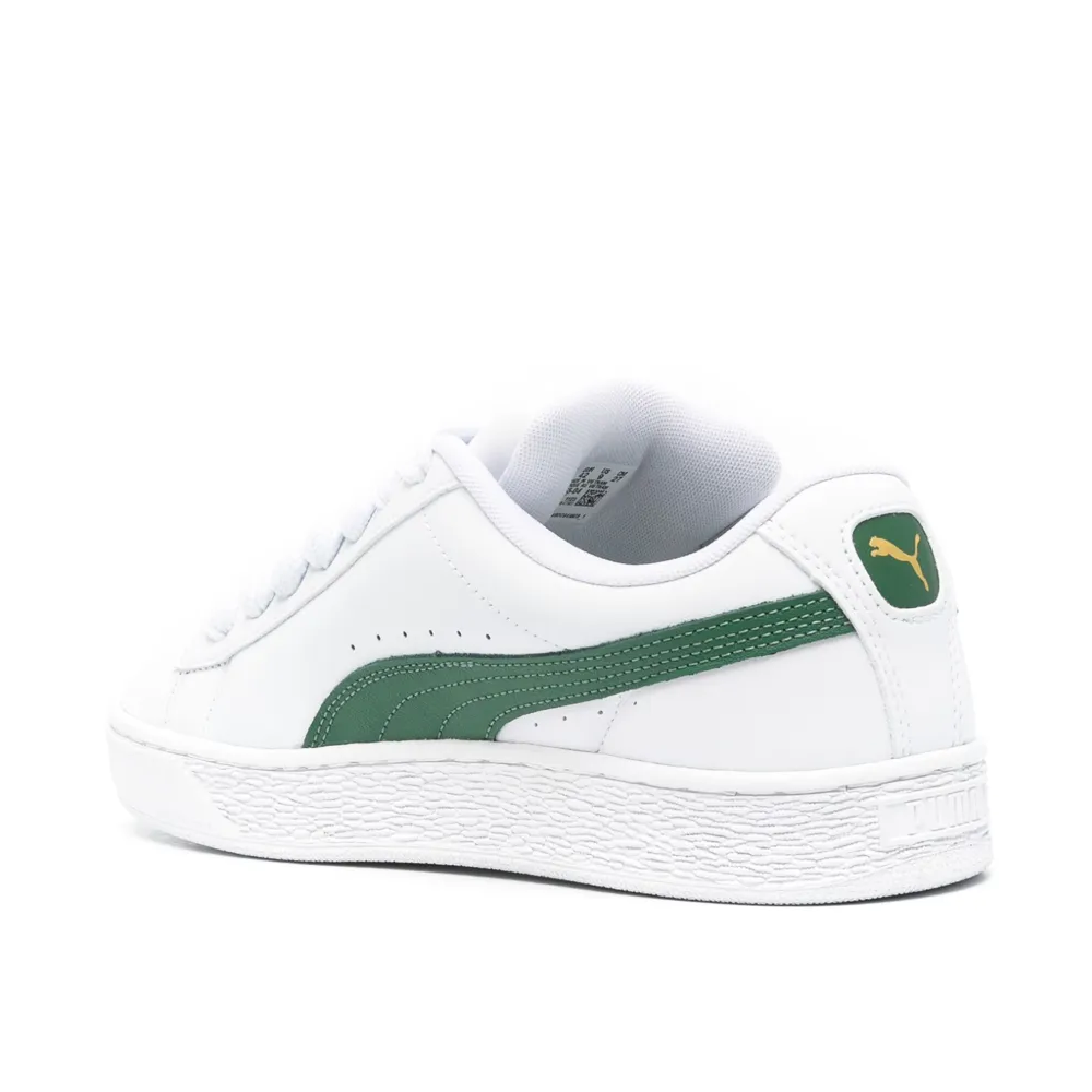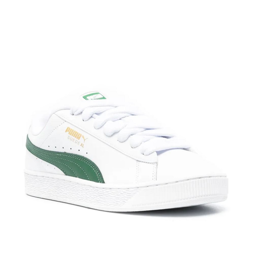 The PUMA Suede XL Leather “White/Green” combines iconic Suede styling with contemporary design. Featuring a smooth white leather upper with green accents on the Formstrip and heel, this sneaker delivers both durability and standout style. Its oversized midsole provides enhanced cushioning and presence, while a padded collar and tongue ensure comfort for all-day wear. Finished with a rubber outsole for traction, the Suede XL Leather “White/Green” blends heritage craftsmanship with modern streetwear appeal, perfect for casual and fashion-forward outfits.