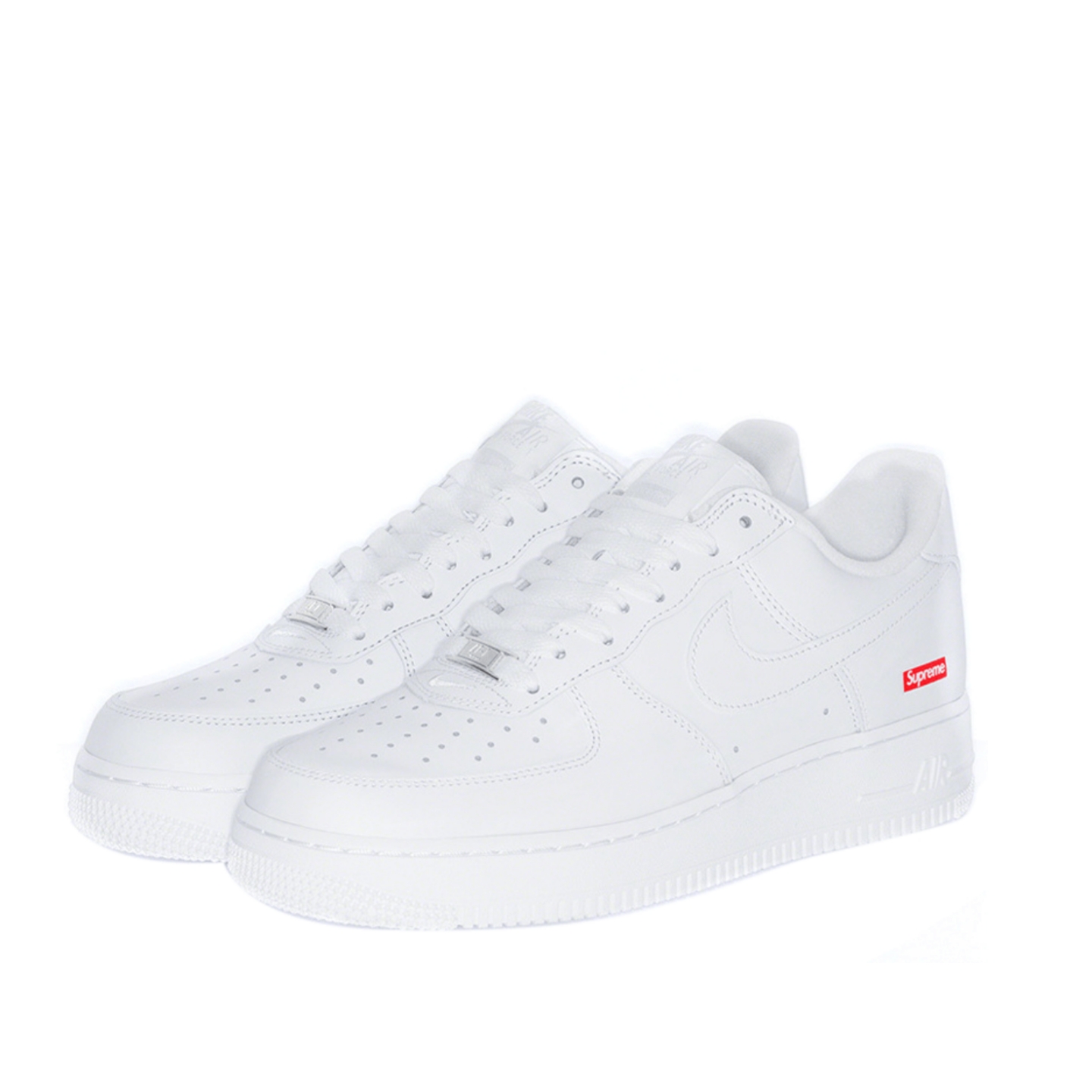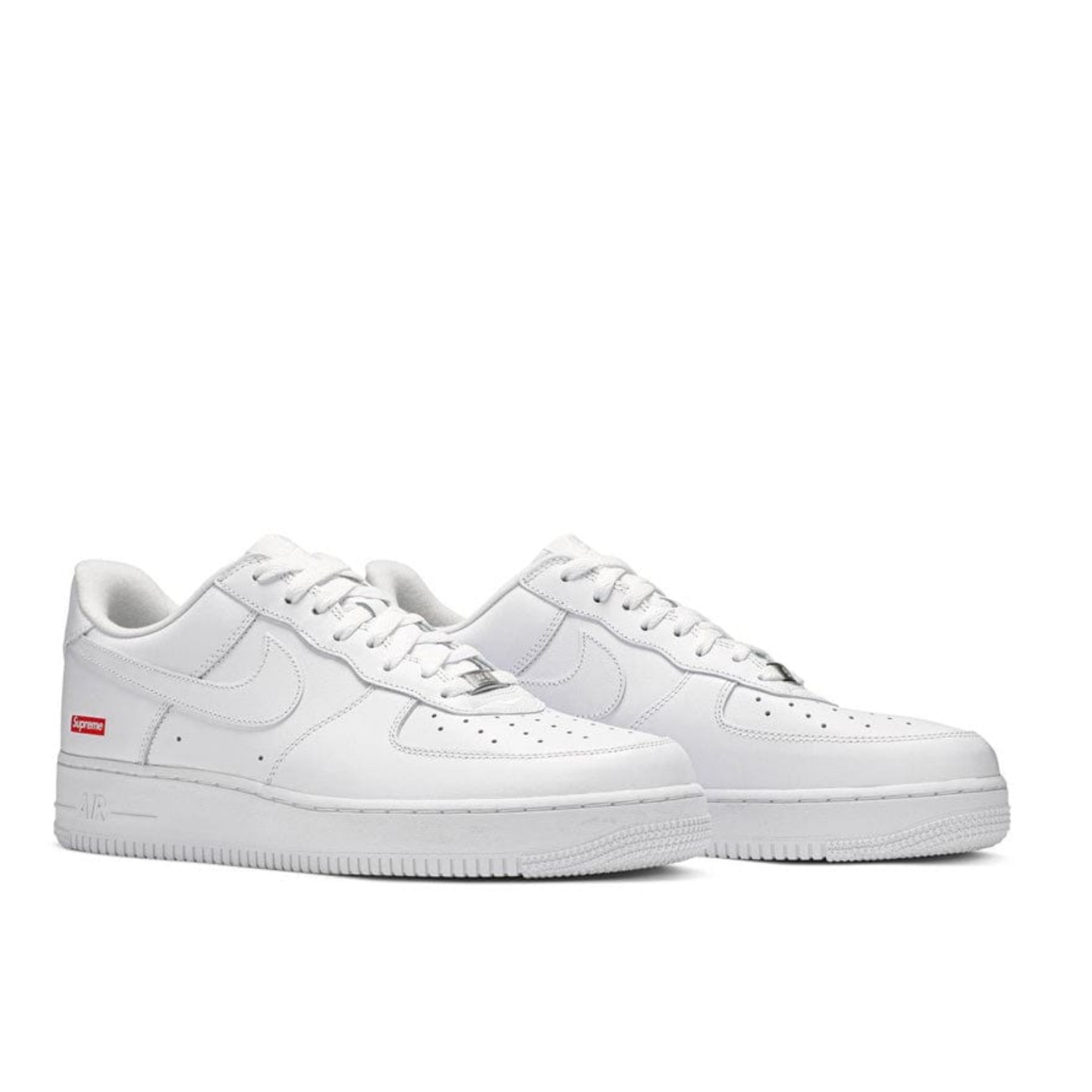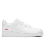The Supreme x Nike Air Force 1 Low White is a minimalist icon with a premium white leather upper and Supreme’s signature red box logo subtly placed near the heel. The clean, all-white design retains the classic Air Force 1 silhouette while adding a streetwear edge through its understated branding. Nike Air cushioning ensures all-day comfort for a sleek, everyday wear look.